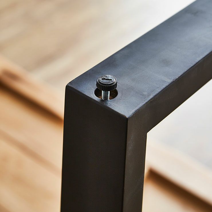 重厚感ある天板の厚みは約6センチ。脚裏にはアジャスターが付いているので、テーブルのがたつきの際に微調整が可能です。