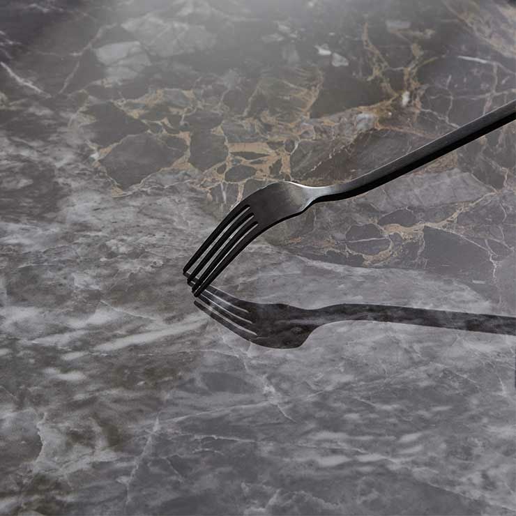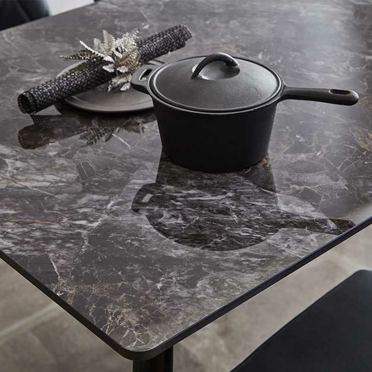 美しい光沢は、まるで天然大理石のような趣き。重厚感あふれるテーブルが特別な空間を演出します。