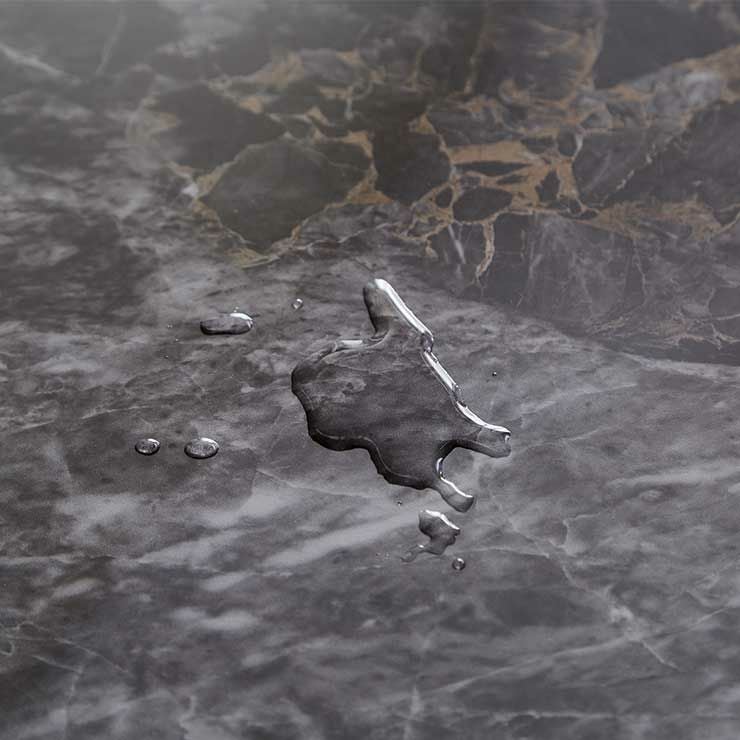 まるで天然大理石のような、美しいツヤツヤの天板。耐火性・耐熱性・耐摩擦性・防水性に優れたセラミック素材。お手入れしやすいからキレイが続く。