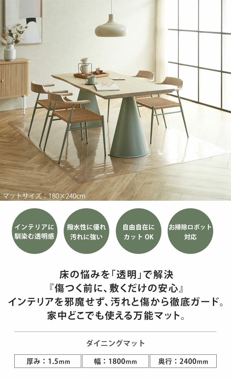 DINING_MAT 家中どこでも使える万能マット 縦180×横240cm 厚み1.5mm 床保護マット クリア 透明 ダイニングマット 透明マット フロアマット キッチンマット テーブルマット チェアマット デスクマット
