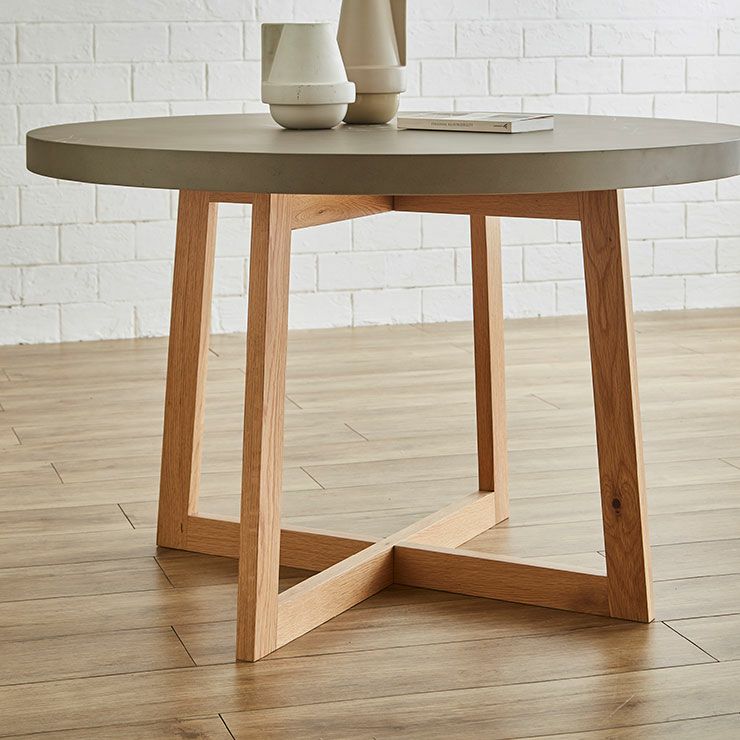 他の画像を見る galette ダイニング5点セット コンクリート調のくすみグレーの天板がおしゃれ 丸テーブル幅110cm/チェア4脚 まるガレット ¥ 147,000 税込 /0件 お気に入りに登録する