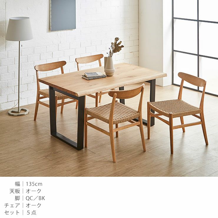 他の画像を見る tenkou-SET ダイニングセット 幅135cm 5点 4点 チェアタイプ ベンチタイプ 選べる脚 天工 一枚板風を演出した突板仕様の耳付きテーブル ¥ 104,998 税込 〜 ¥ 税込 5.00/1件 お気に入りに登録する