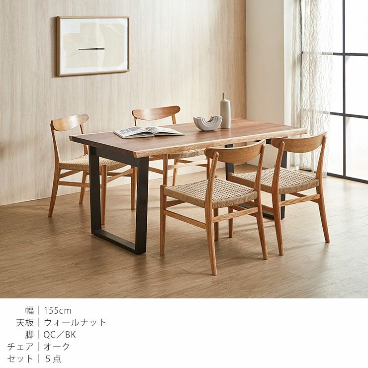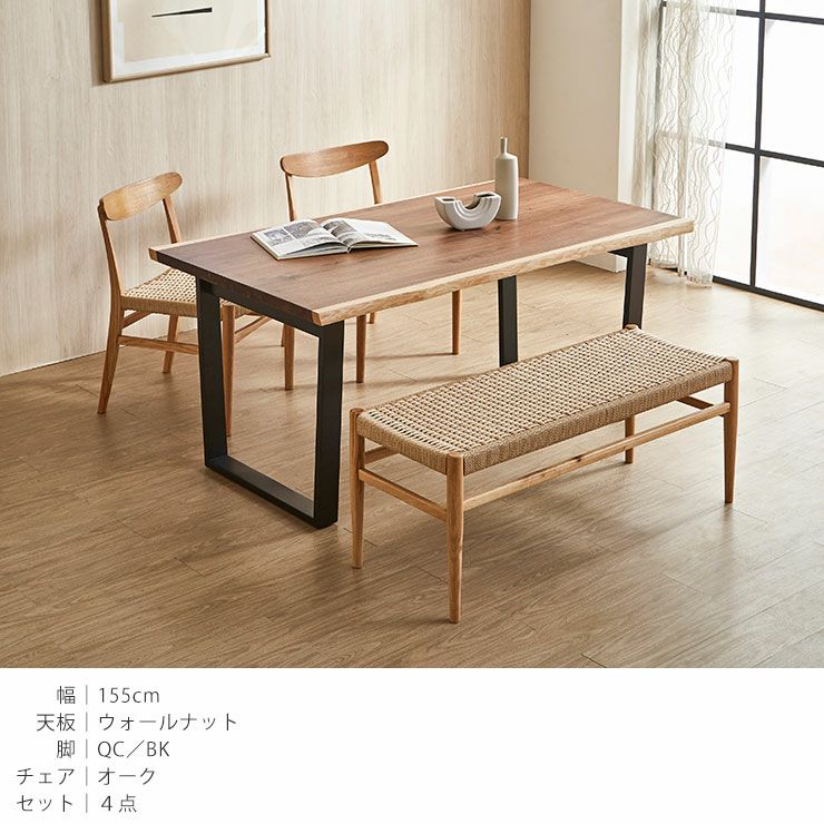 【4点セット】 color:ウォールナット size:幅155cm 脚:QC/BK チェア:オーク