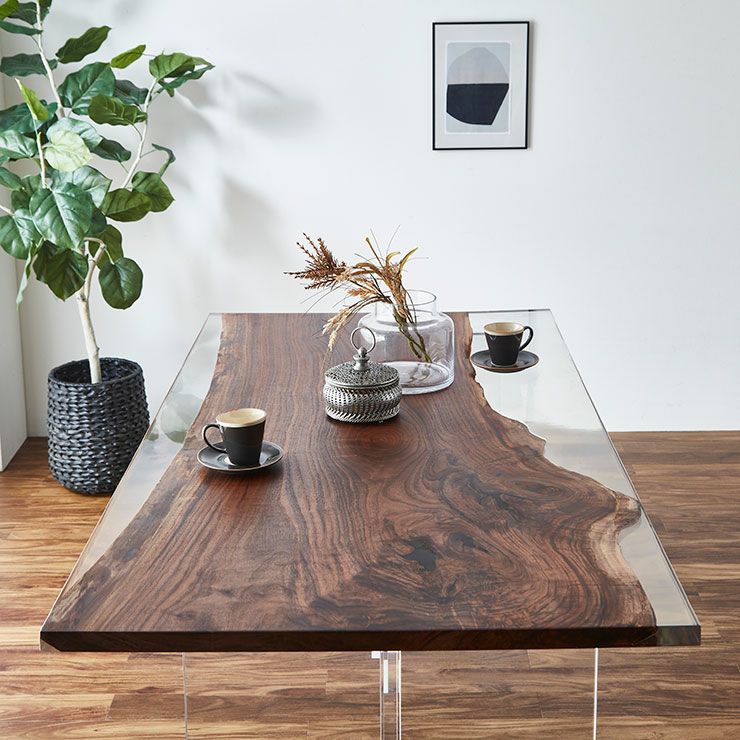 無垢一枚板に透明樹脂を融合。ダイナミックかつ繊細な天然の造形美。