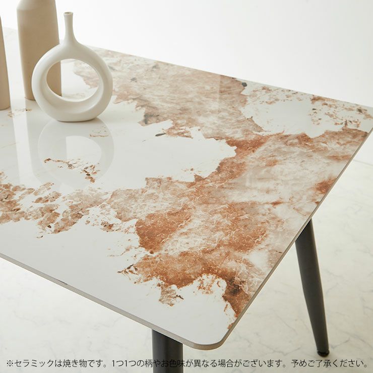 まるで天然大理石のような、美しいツヤツヤの天板。耐火性・耐熱性・耐摩擦性・防水性に優れたセラミック素材。お手入れしやすいからキレイが続く。