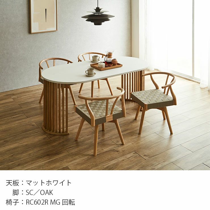 天板:マットホワイト 脚:SC/OAK チェア:RC602RMG回転