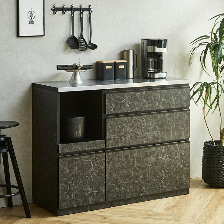 横幅約120センチの広々カウンターは、家電製品を並べて置くのはもちろん、作業スペースとしても十分な広さ。