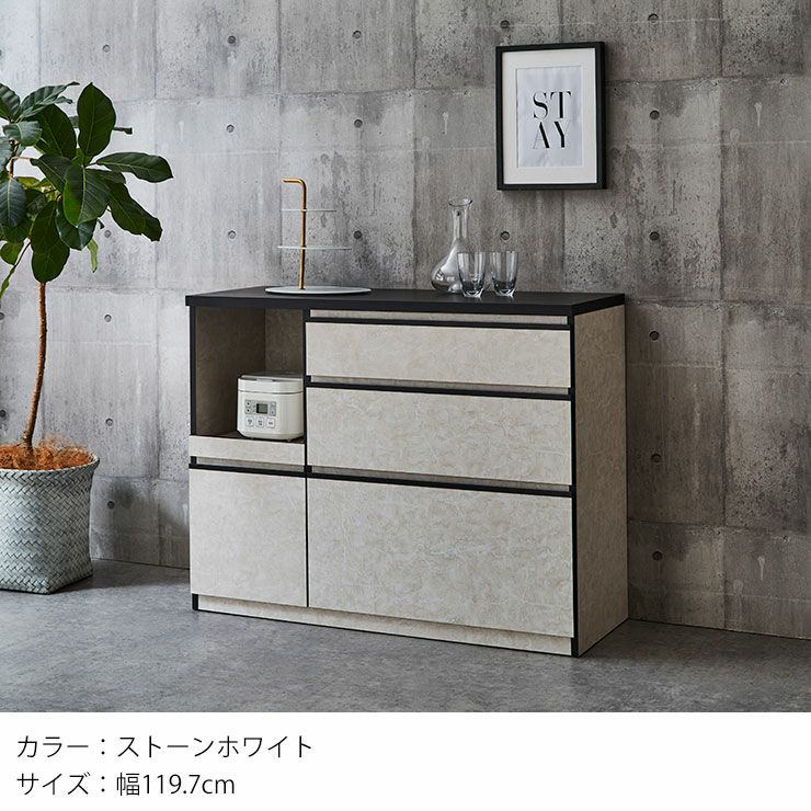 color:ストーンホワイト、size:幅119.7cm、追加オプション:吊り戸棚(SWH×幅120)