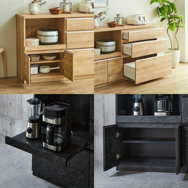 炊飯器やポットなどふたの開け閉めが必要な家電製品を置くのに最適です。