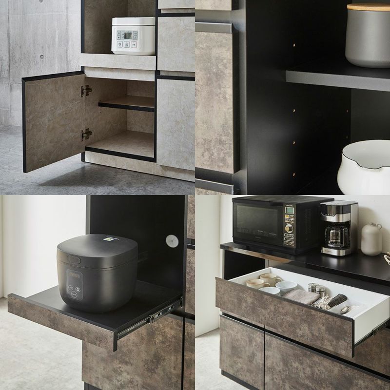 color:ストーンブラック、size:幅159.2cm、追加オプション:吊り戸棚(NA×幅140)