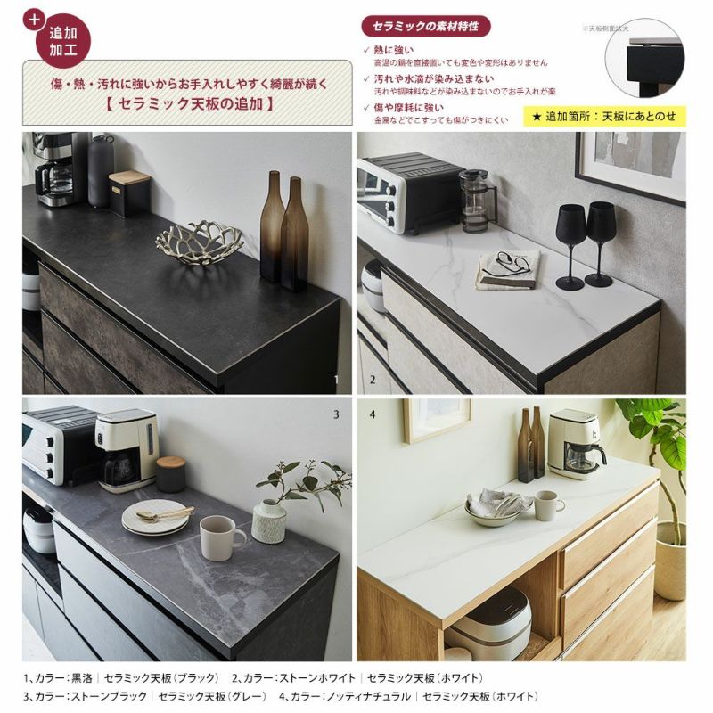 color:ノッティナチュラル、追加オプション:セラミック天板(ホワイト)