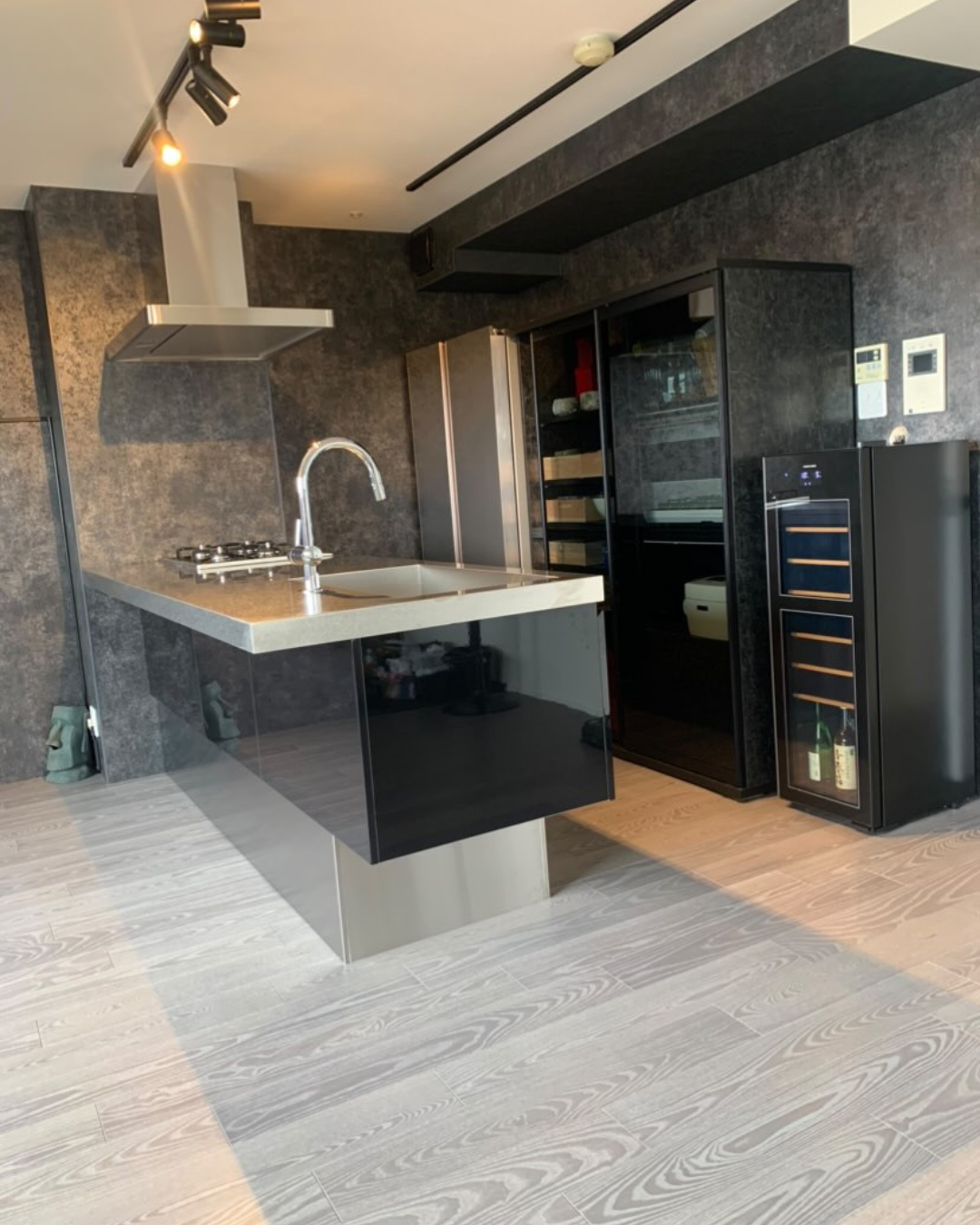 取っ手がないので外観スッキリ。スタイリッシュで美しいモダンな雰囲気。