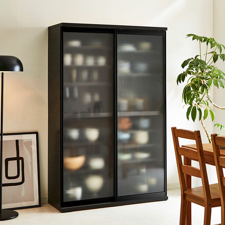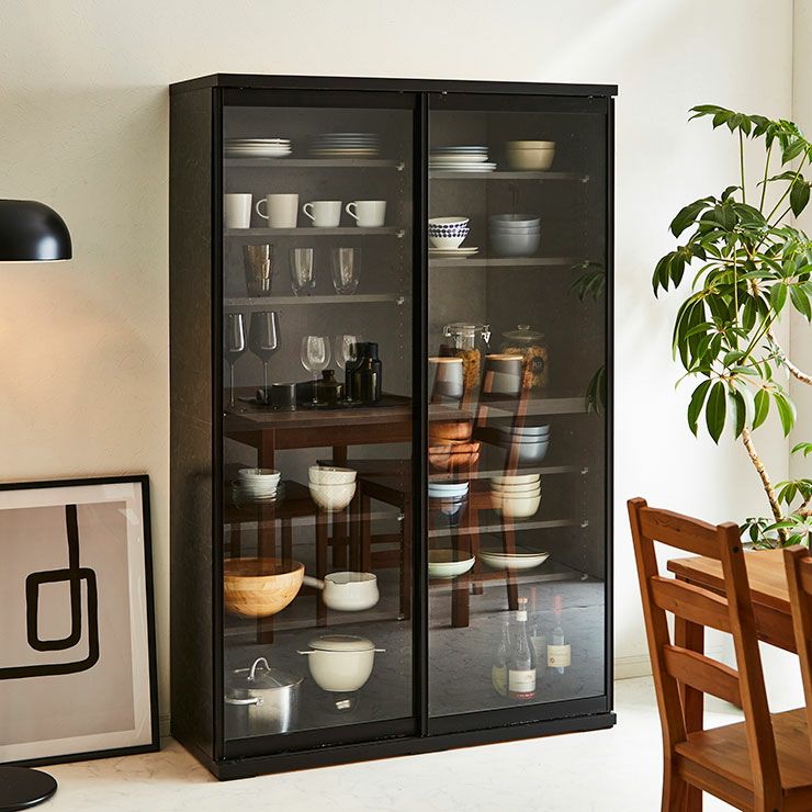 中はたっぷり収納できる大容量で、10枚の棚板を高さ3cm間隔で自由に設定して頂けます。効率よく収納できるので、コップにお皿、調理器具まで沢山収納する事ができます!さらに棚がズレ落ちにくいL型受け具の採用で軽度の耐震対策になっております。