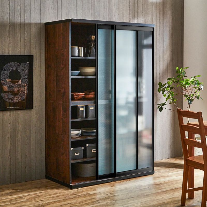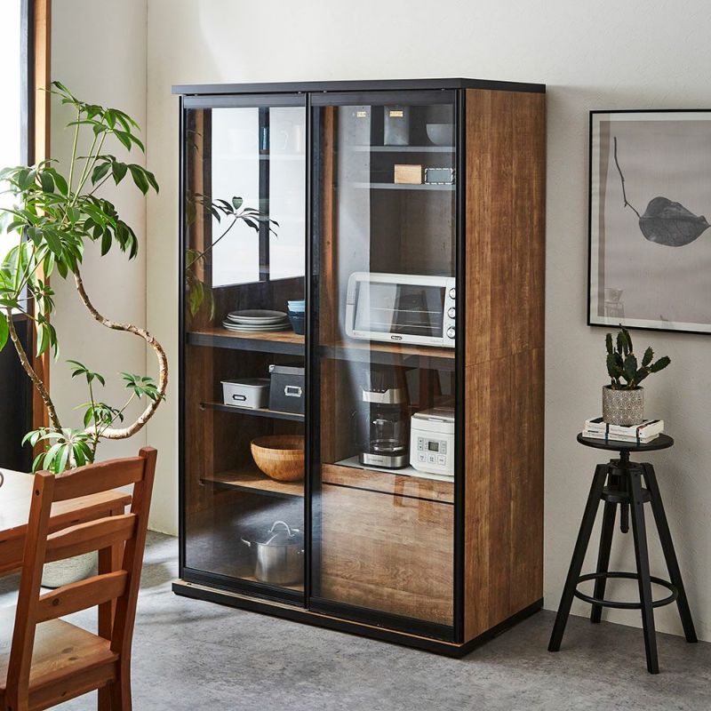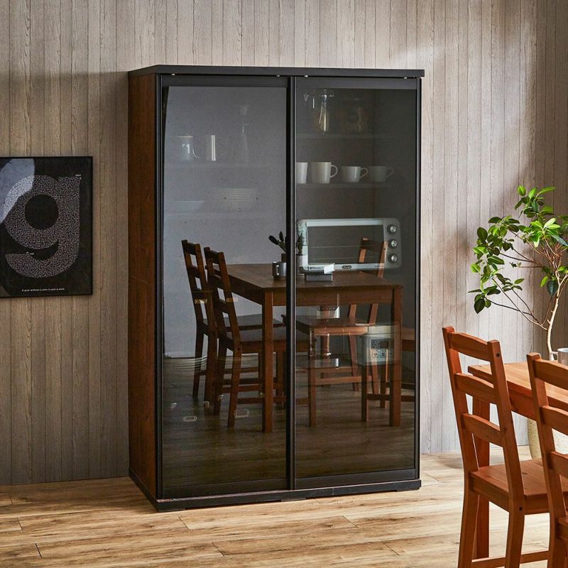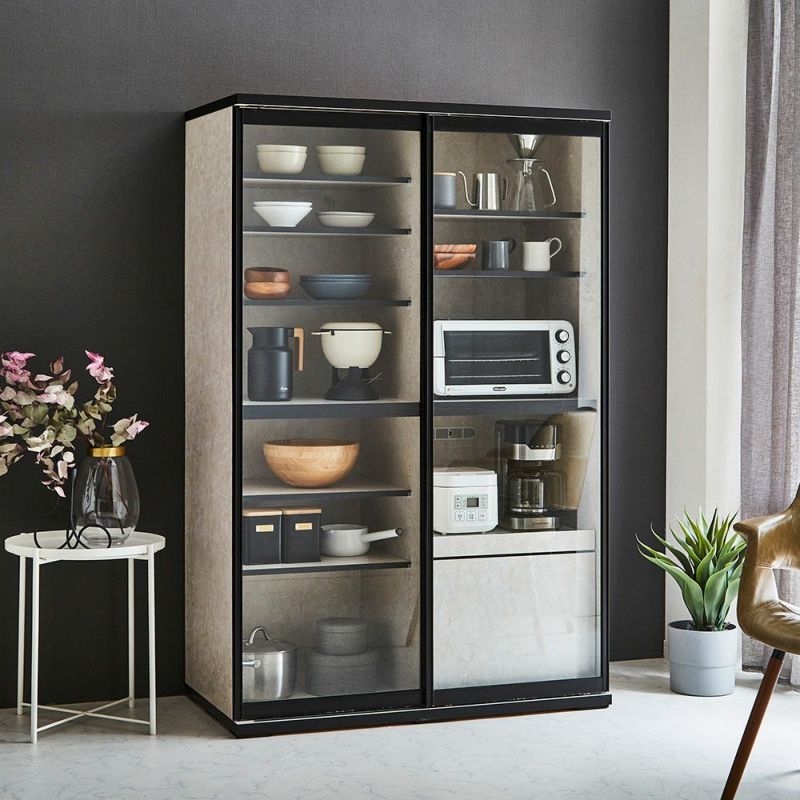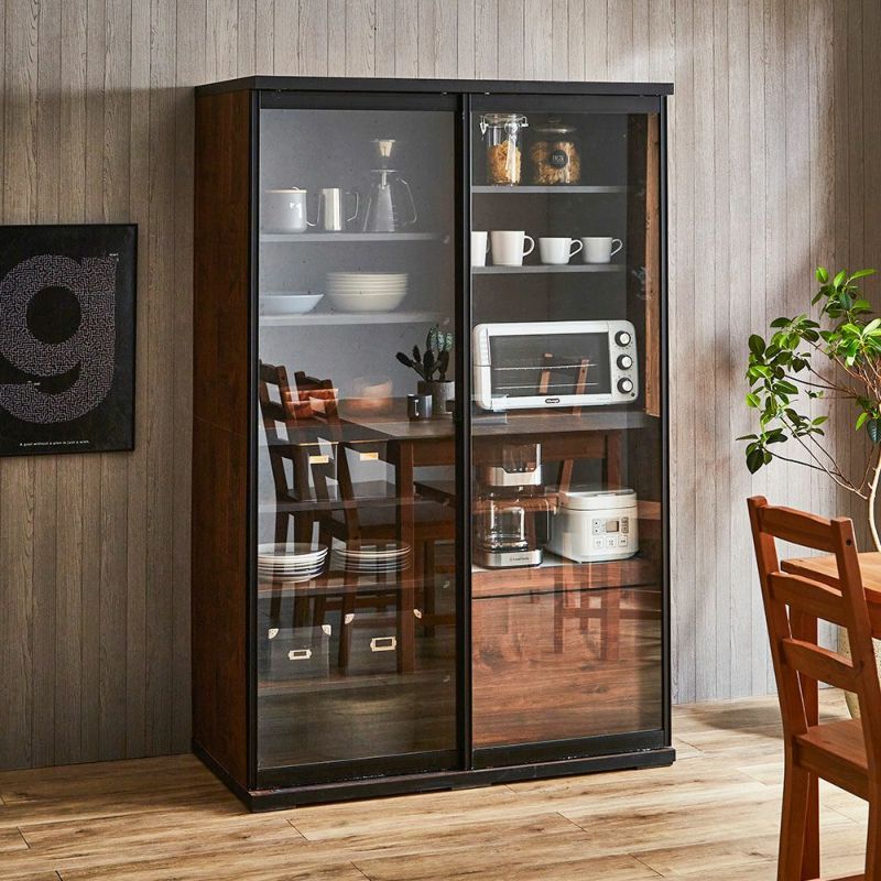 食器も家電製品もたっぷり入る大容量の引き戸食器棚。横スライドだから開閉にスペースを取りません。