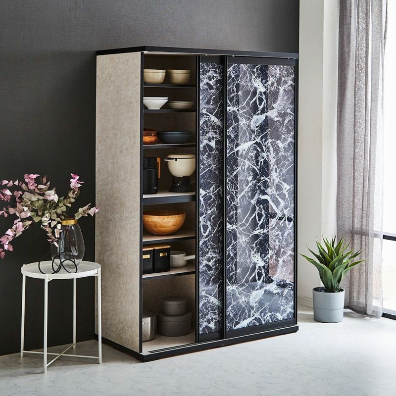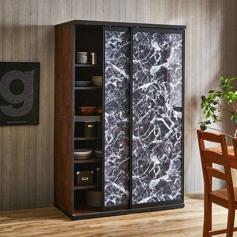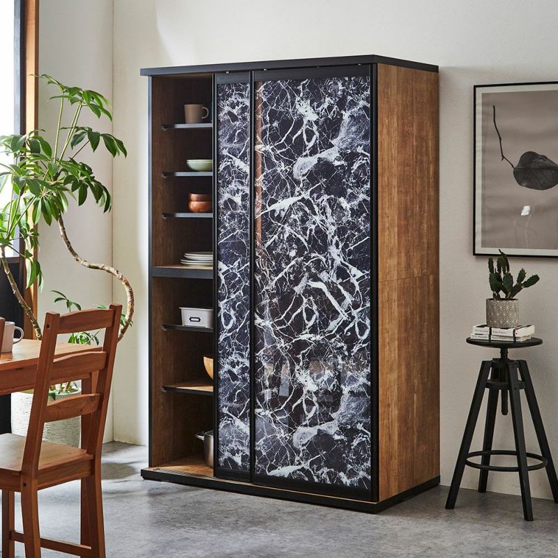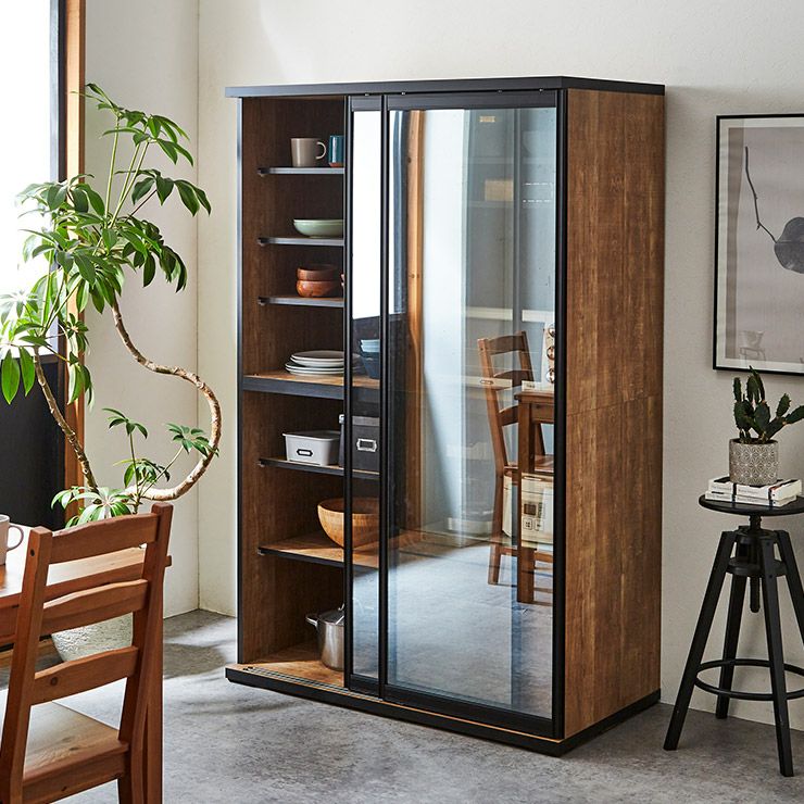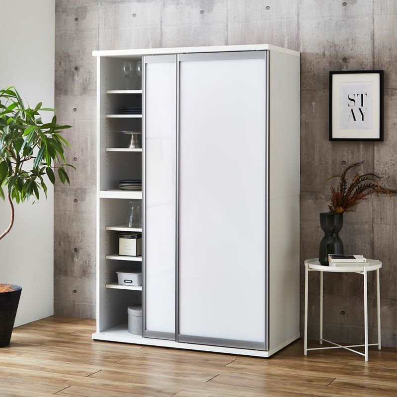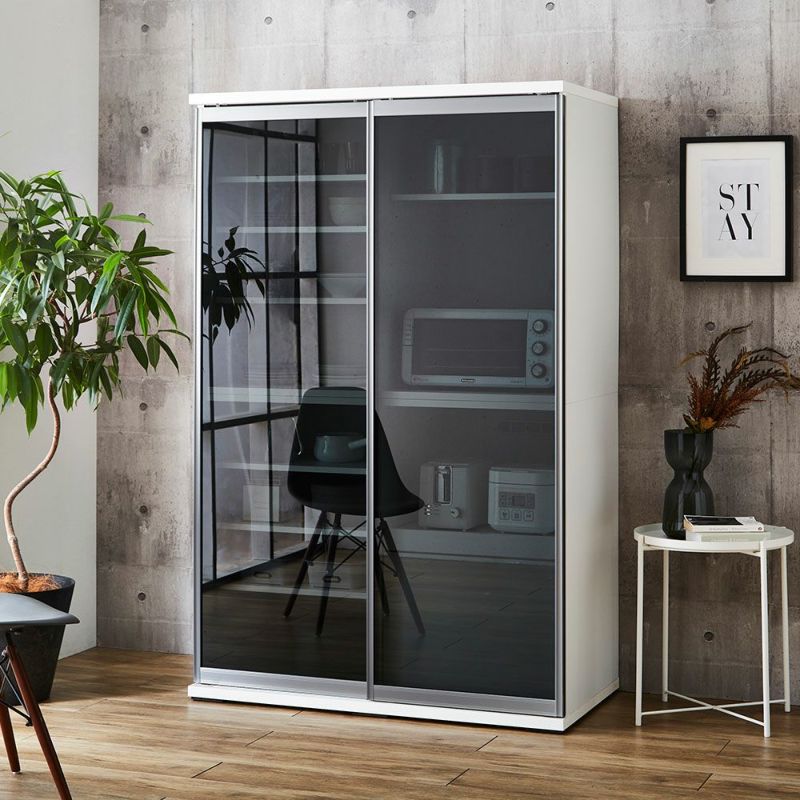 食器も家電製品もたっぷり入る大容量の引き戸食器棚。横スライドだから開閉にスペースを取りません。