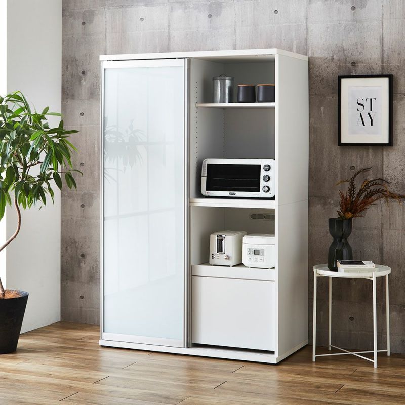 食器も家電製品もたっぷり入る大容量の引き戸食器棚。横スライドだから開閉にスペースを取りません。