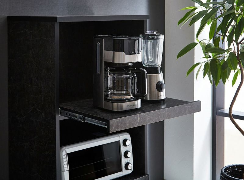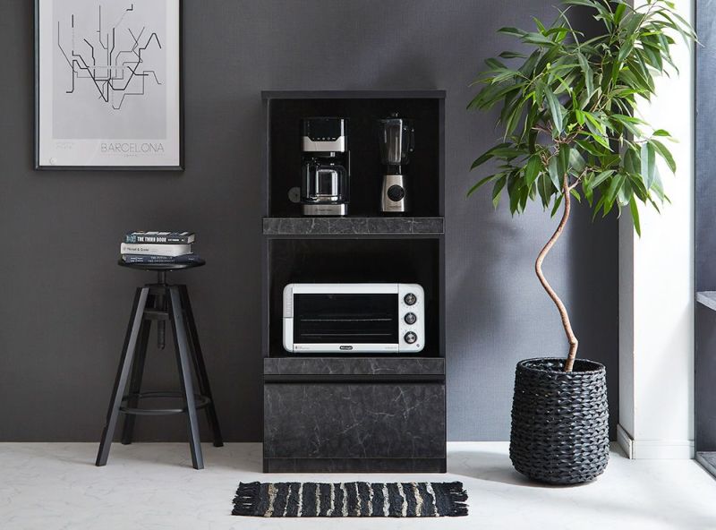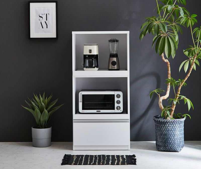 シンプルかつコンパクトで機能的。 置き場所に困っていた電子レンジもトースターもポットも、これ一台あればスッキリ収納できます。