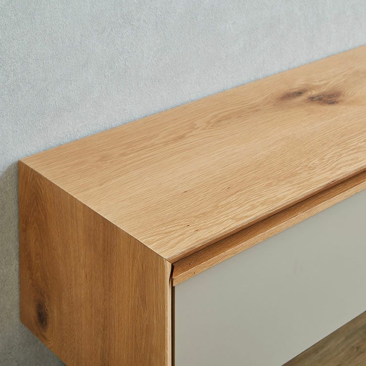 ホワイトオーク節有突板、MDF、強化紙、ウレタン塗装、アンダーマウントレール