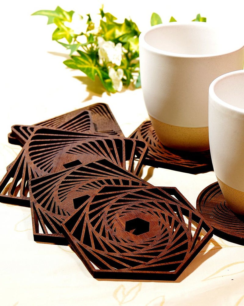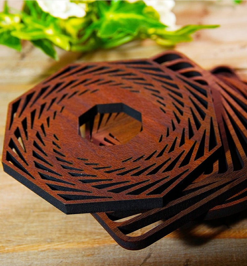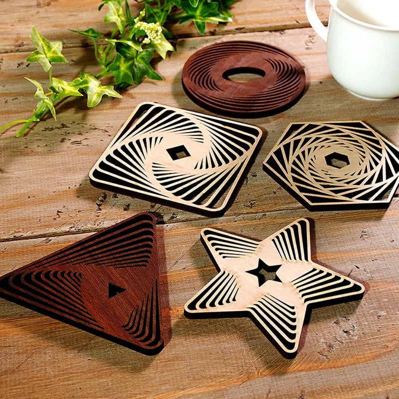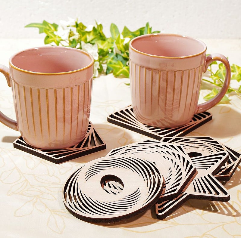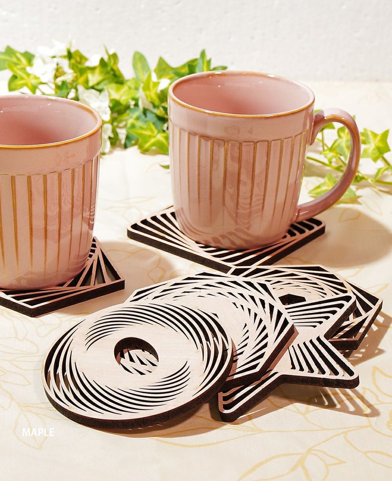 木の温もりを感じる、自然な素材のコースター。シンプルながらも美しいデザインが食卓を彩ります。