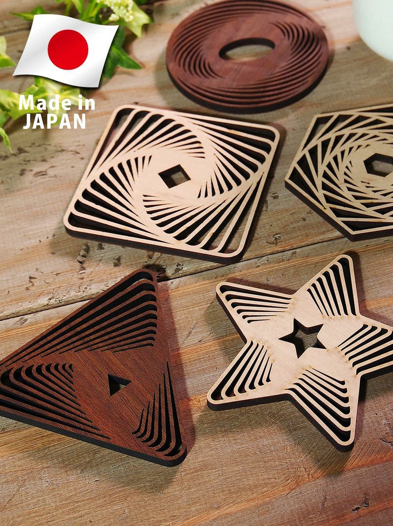 12種から選べるデザイン 木製コースター 5枚セット 9cm×9cm メープル ウォールナット 4.0mm厚の丈夫な国産MDF