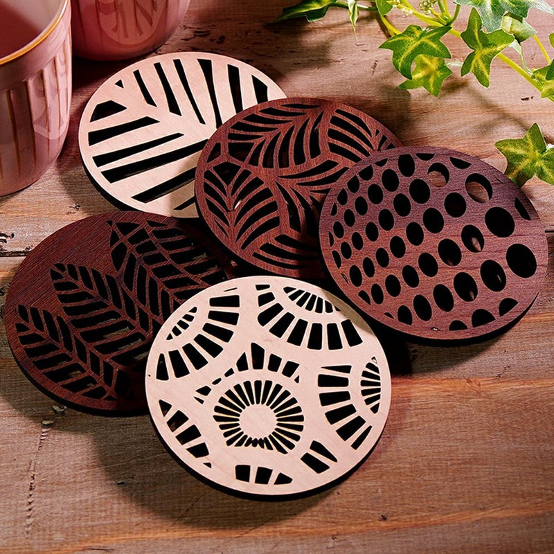 木製(MDF材)の丸型コースターで、ユニークな模様を楽しめます!