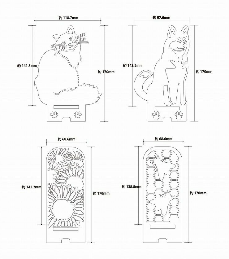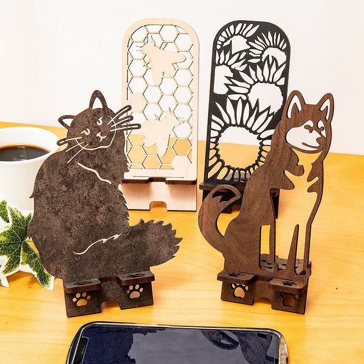 4種から選べるデザイン 木製 スマホスタンド 切り抜き