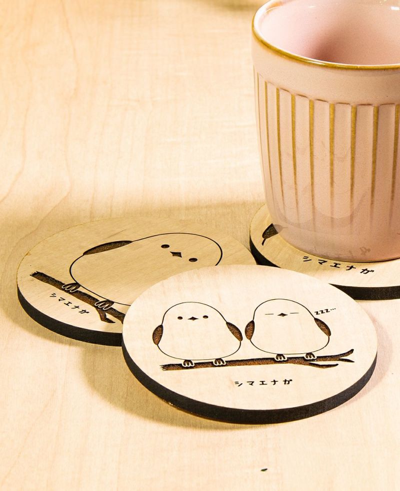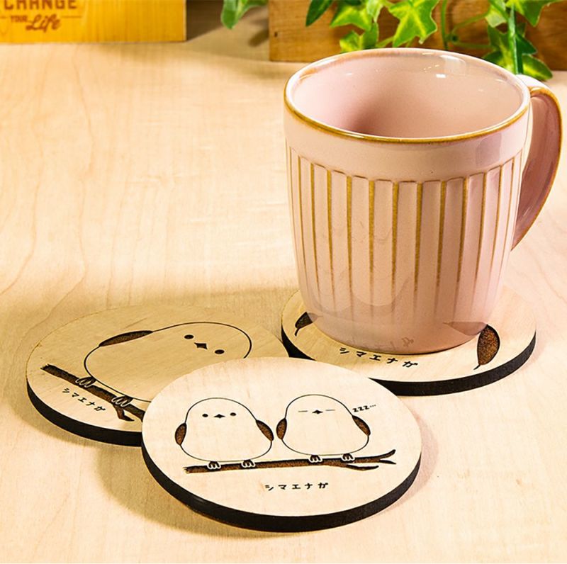シマエナガの愛らしさと木の温もりが融合したコースターで、贅沢なティータイムをお楽しみください。※ウォールナット色は販売終了(廃盤)となりました。予めご了承