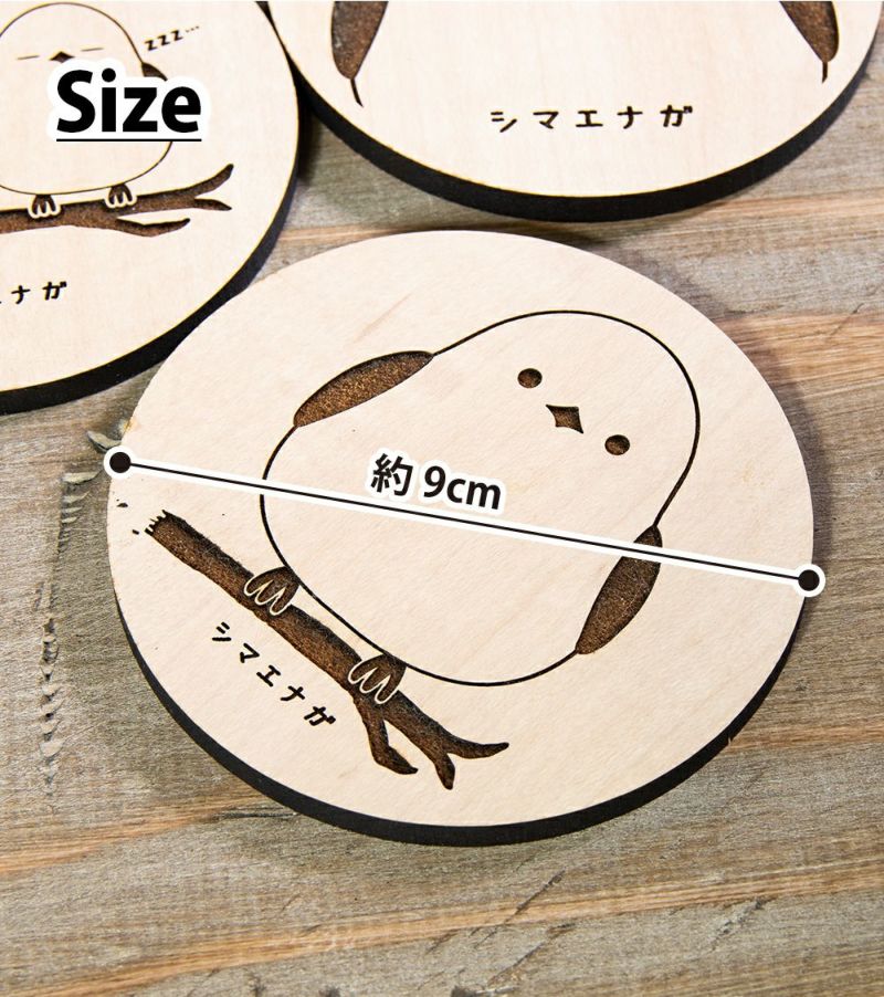 3種から選べるデザイン 丸形木製コースター 4枚セット シマエナガ 約9cm×9cm