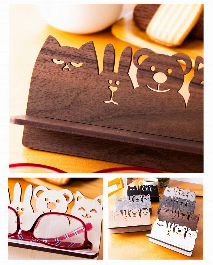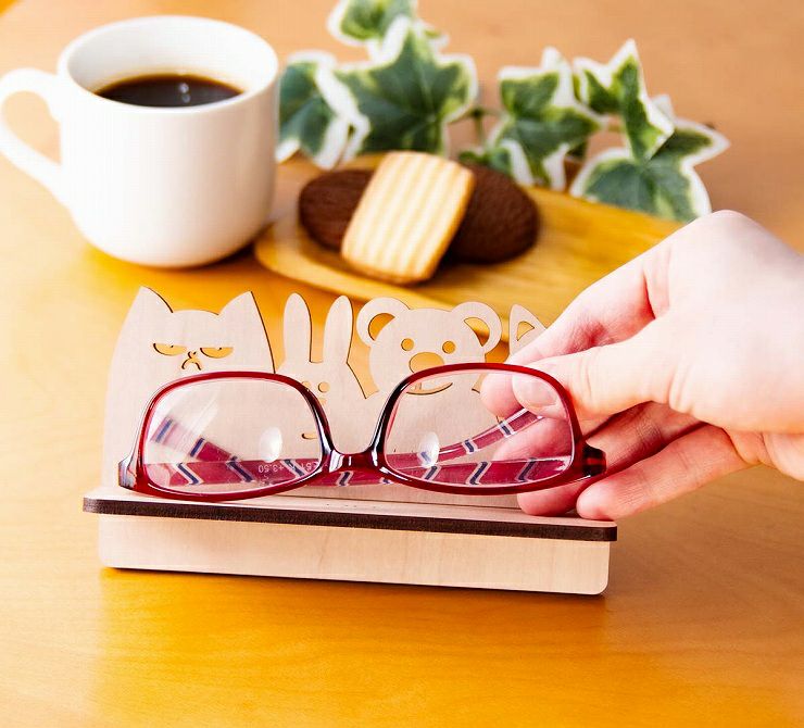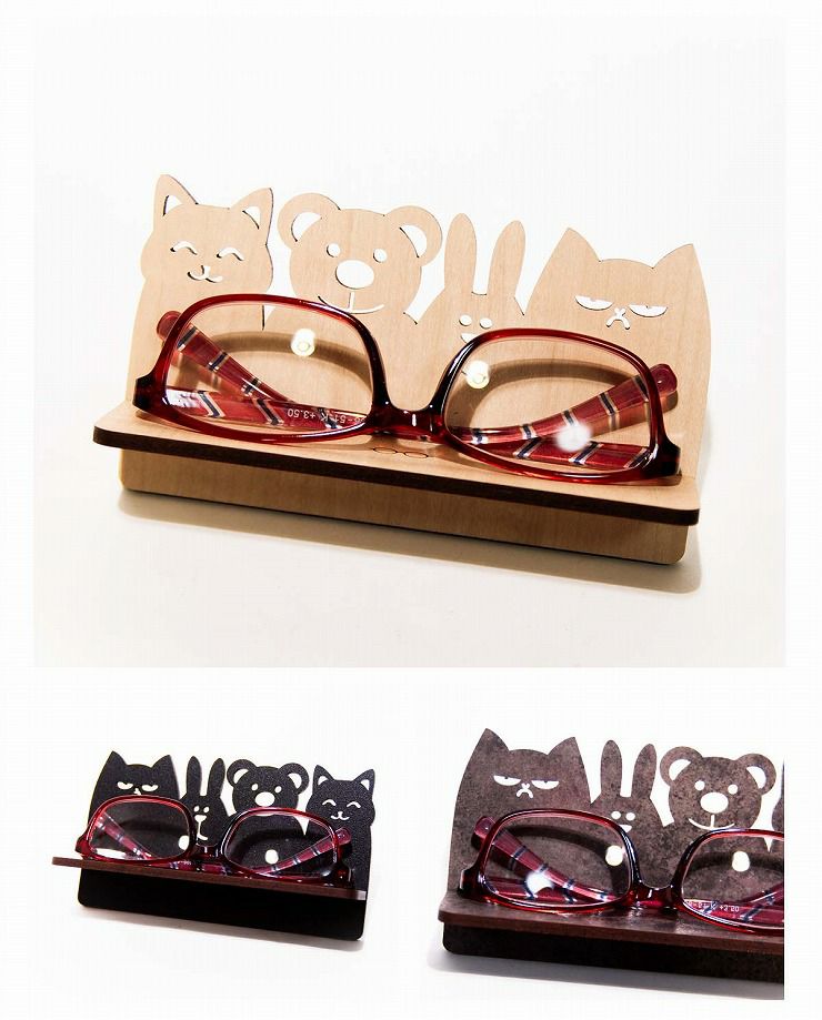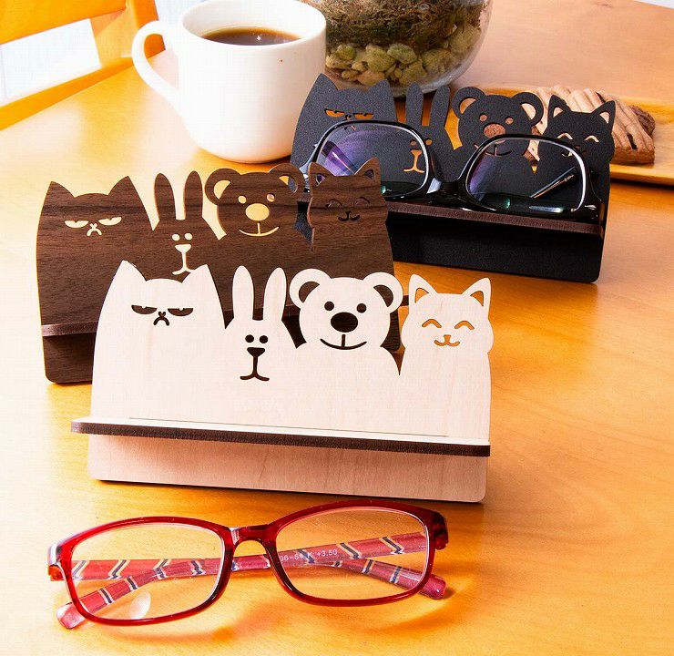 自然を感じる木製(MDF材)のメガネスタンド。動物たちの可愛らしいフォルムで、あなたのお気に入りのメガネを飾りましょう。