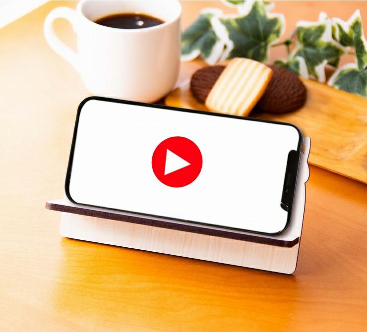 横置き型のデザインなので、リビングやデスクなどの場所に置いてもスペースを取らず、スッキリとした印象を与えます。横置きのスマートフォンスタンド(スマホスタンド)として動画再生用にも便利です。