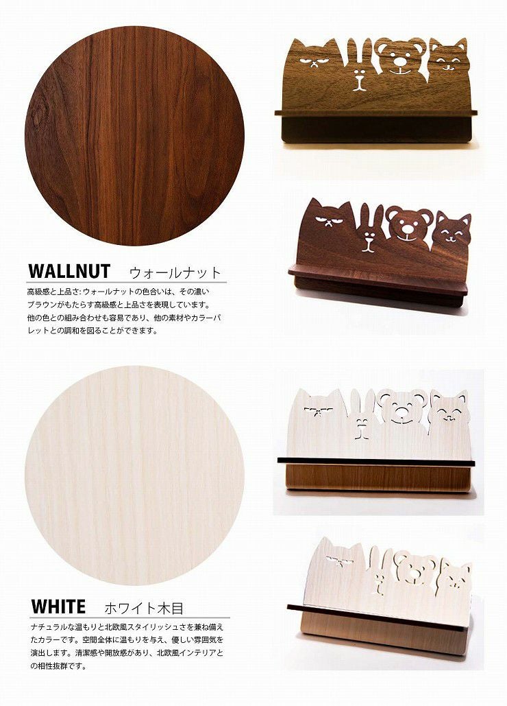 かわいい アニマル デザイン 木製 メガネスタンド 9cm×9cm メープル ウォールナット 4.0mm厚の丈夫な国産MDF