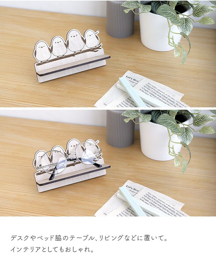megane_stand002 木製 メガネスタンド シマエナガ グッズ 名刺スタンド メガネスタンド002