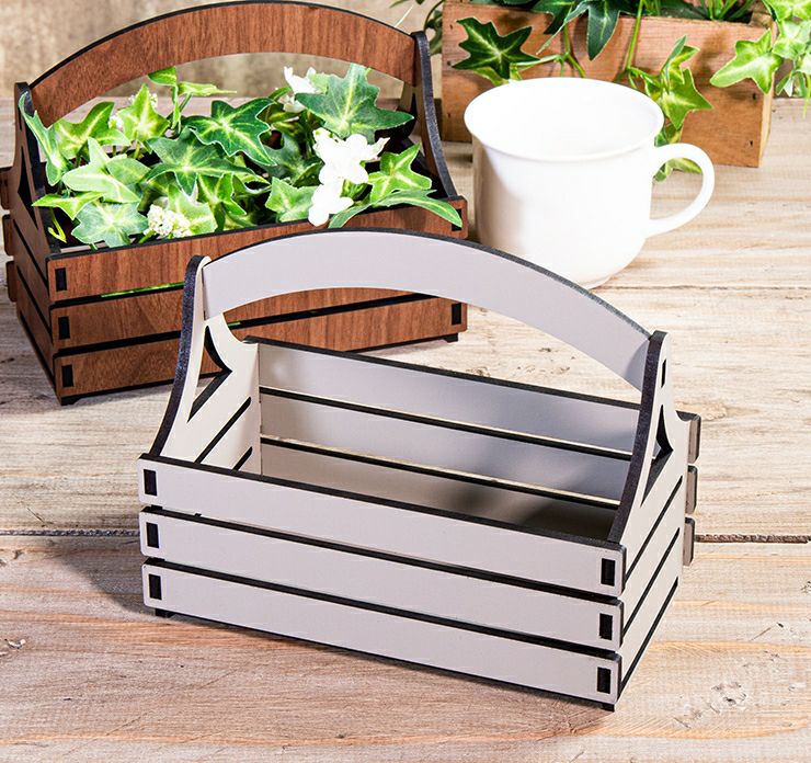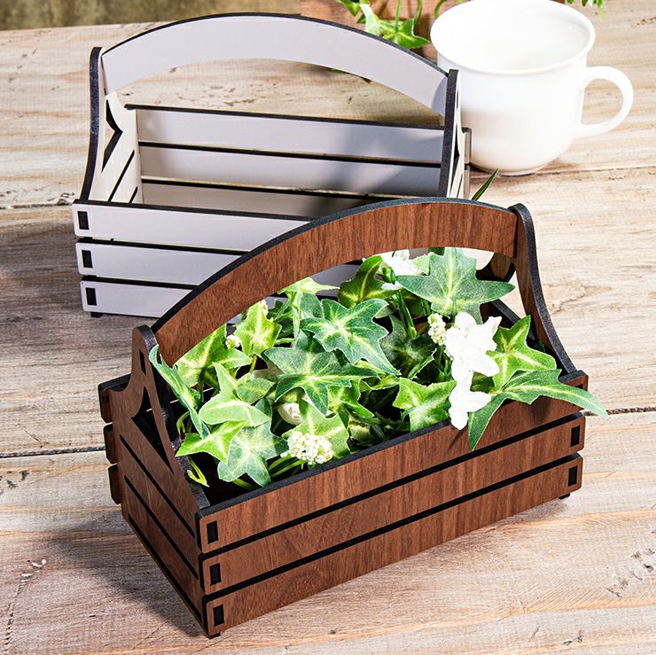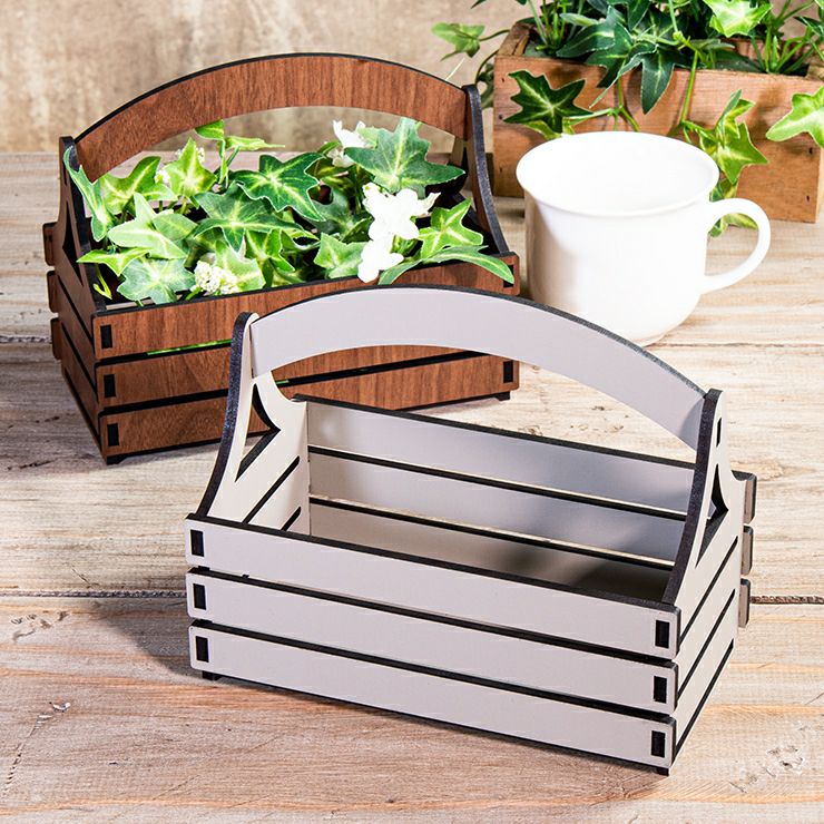 木製 フラワーバスケット インテリア小物バスケット メープル ウォールナット アースグレージュ 4mm厚の産MDF