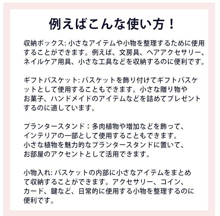 カントリーテイスト溢れるコンパクトなバスケット(かご)が登場!造花や小物を飾るのにぴったりのアイテムです。自然な風合いの木製素材と編み込みデザインが魅力で、インテリアに温かみを加えます。