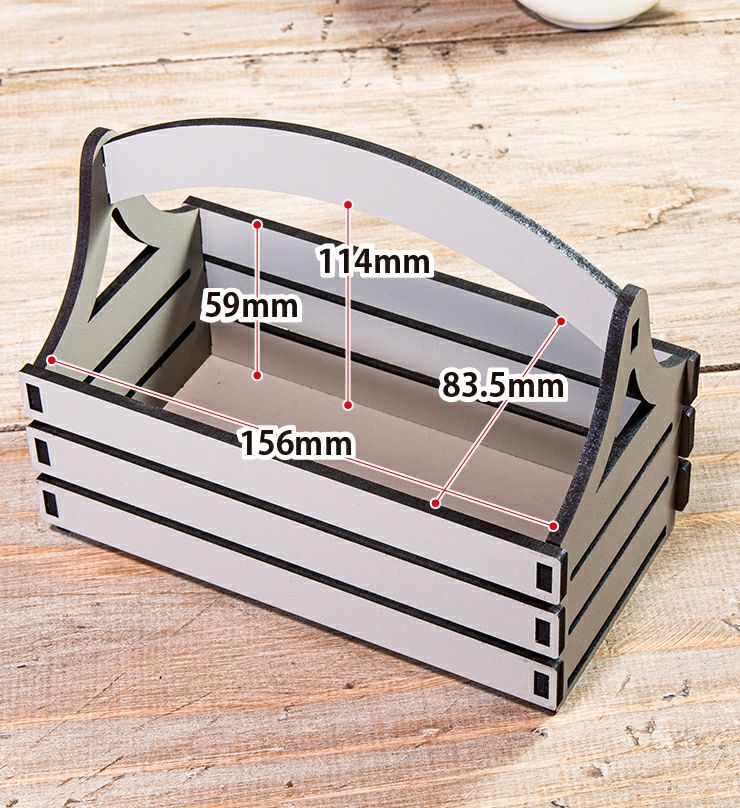 側板と底板、取っ手をはめ込んで付け合わせるだけ!工具もボンドも不要でお組み立てが可能です。