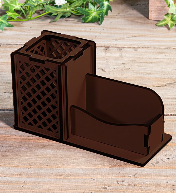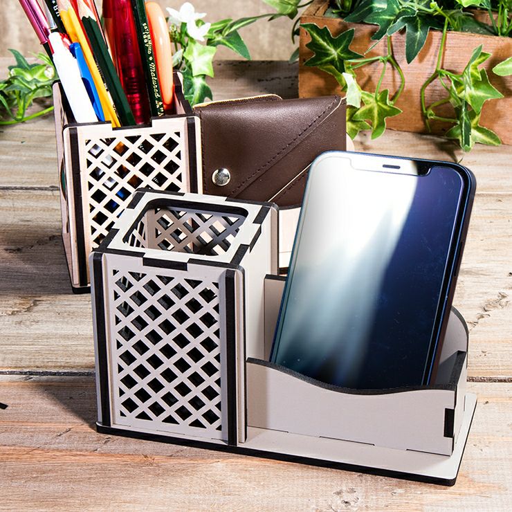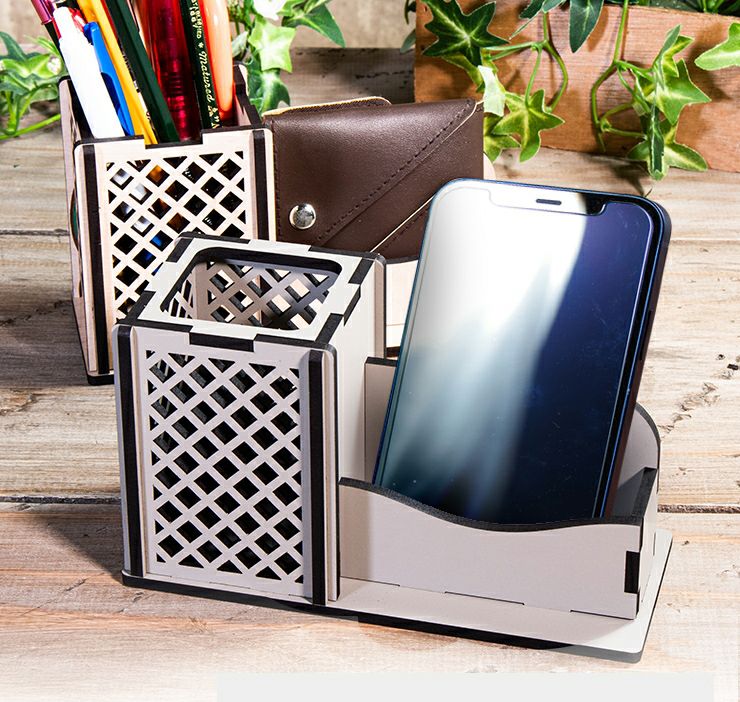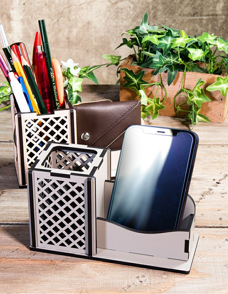 木製 ペンスタンドスマホスタンド付き メープル ウォールナット アースグレージュ 4mm厚の産MDF