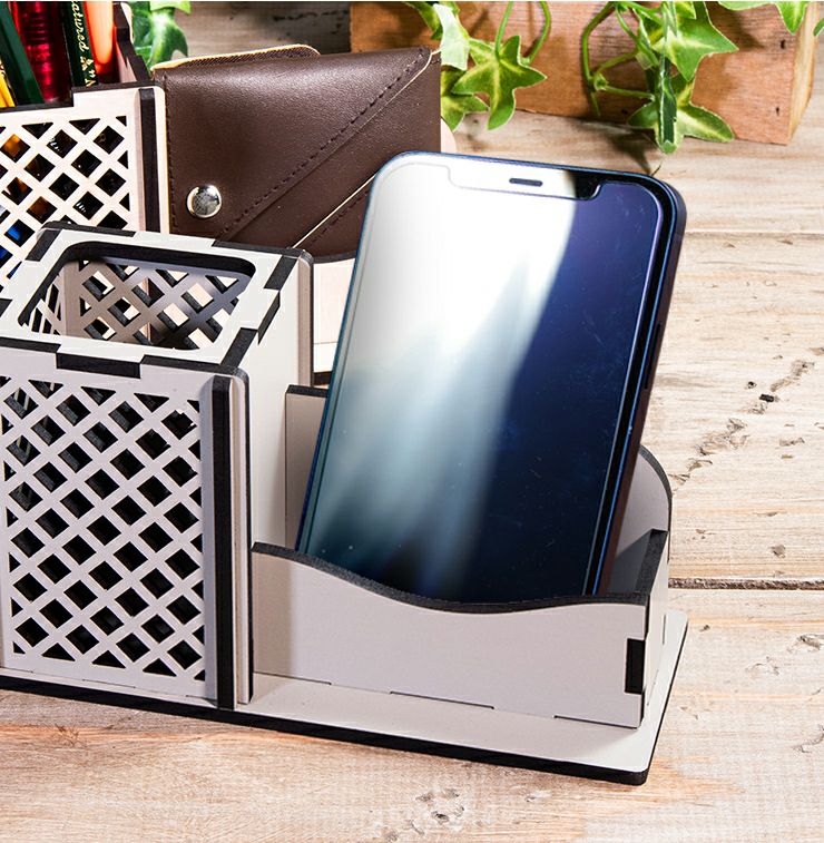 ペンスタンドの横にはスマホスタンドや小物を置けるスペースがあり、お好みに合わせていろいろな使い道がございます。