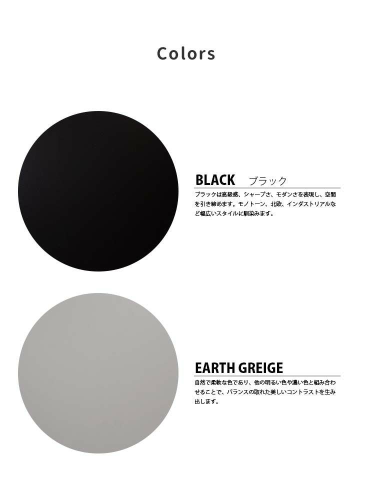 ブラックは高級感、シャープさ、モダンさを表現し、空間を引き締めます。モノトーン、北欧、インダストリアルなど幅広いスタイルに馴染みます。