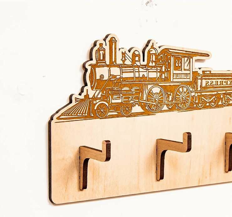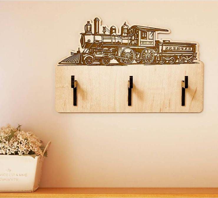 木製キーハンガー ポップな蒸気機関 キーフックハンガー
