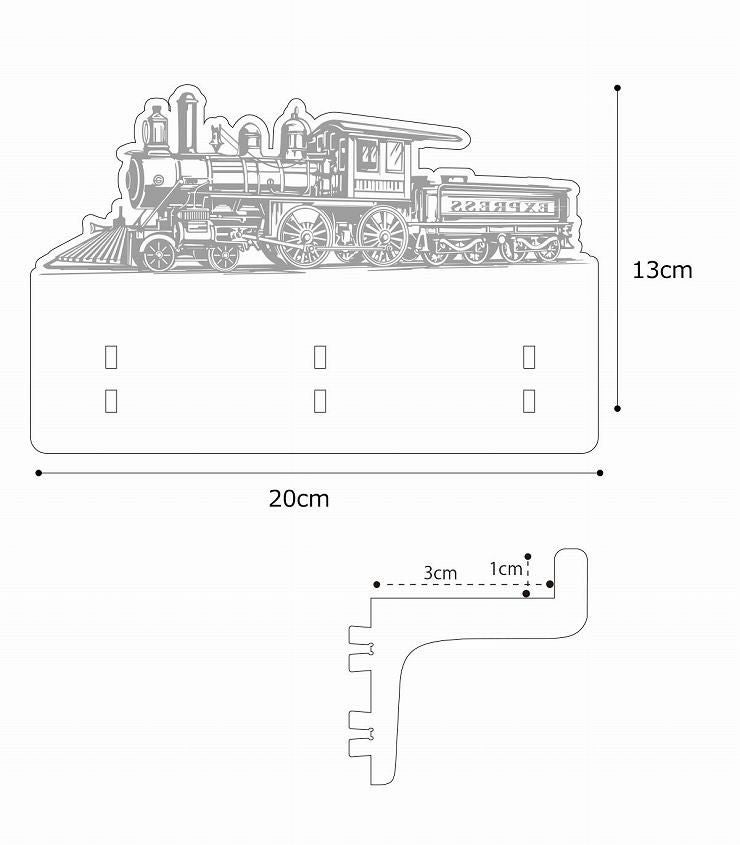 木製キーハンガー ビンテージ蒸気機関車 キーフックハンガー アクセサリーハンガー 3本フック メープル 国産MDF おしゃれ 国産 北欧 woodハンガー 雑貨 まとめ買い 組み立て式