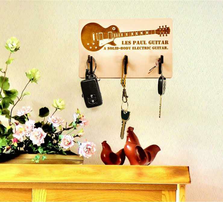 木製キーハンガー レスポール エレキギター キーフックハンガー アクセサリーハンガー 3本フック メープル 国産MDF おしゃれ 国産 北欧 woodハンガー 雑貨 まとめ買い 組み立て式