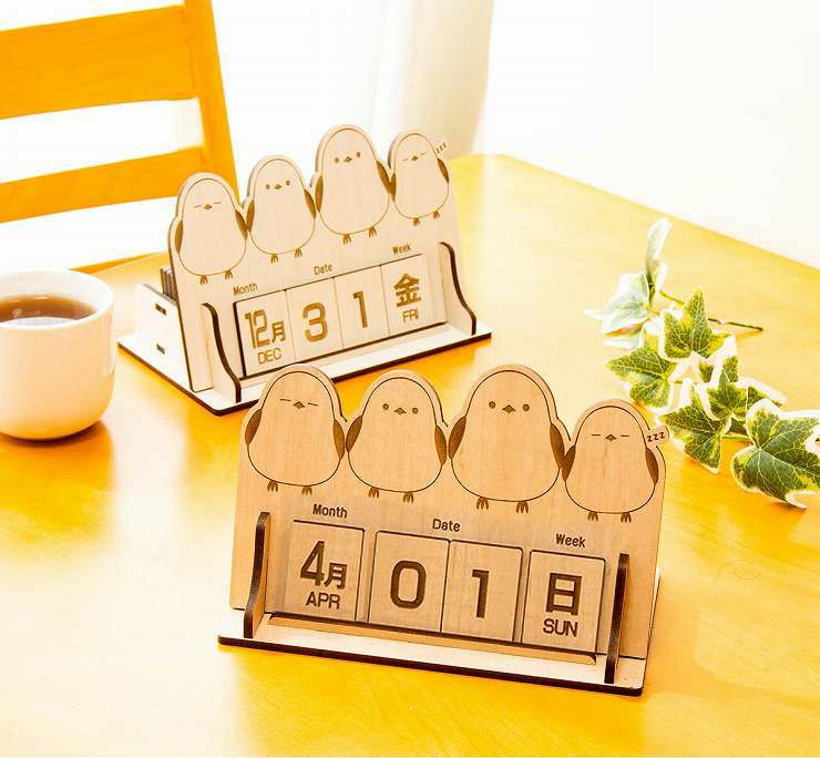 木製卓上カレンダー 万年カレンダー シマエナガ カレンダー003
