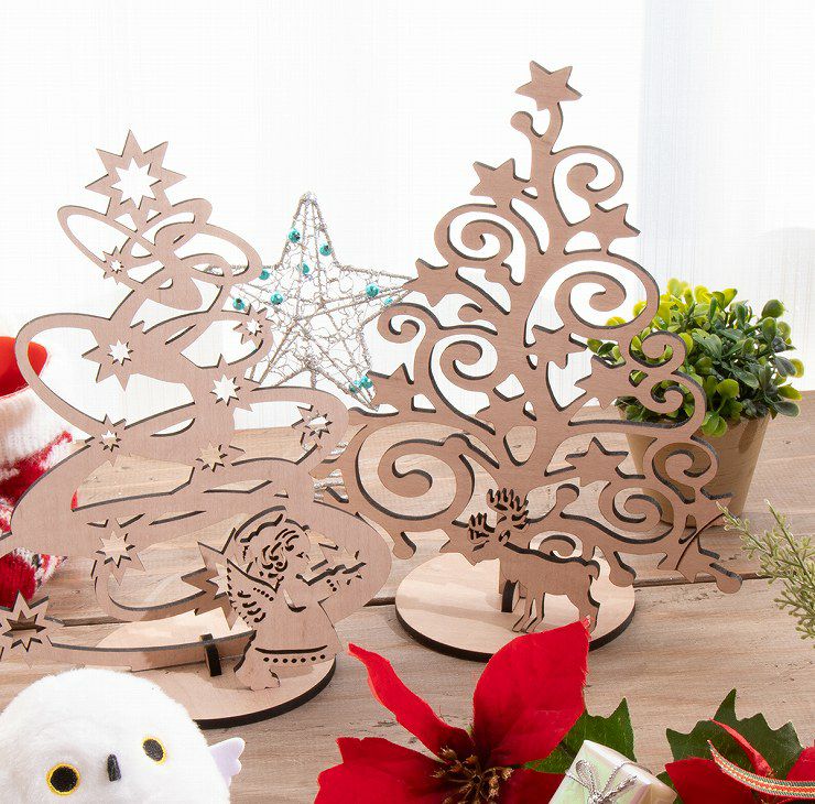 レーザー加工により図柄が カットされています。 お好みに合わせてお選びいただけ ます。プレゼントにもぴったりです!※LEDキャンドル等の装飾品は付属しておりません