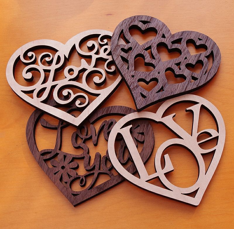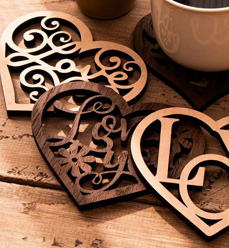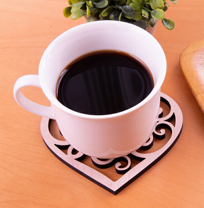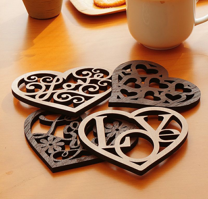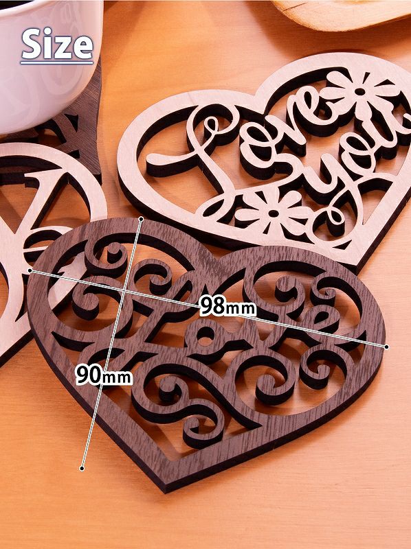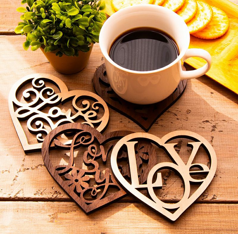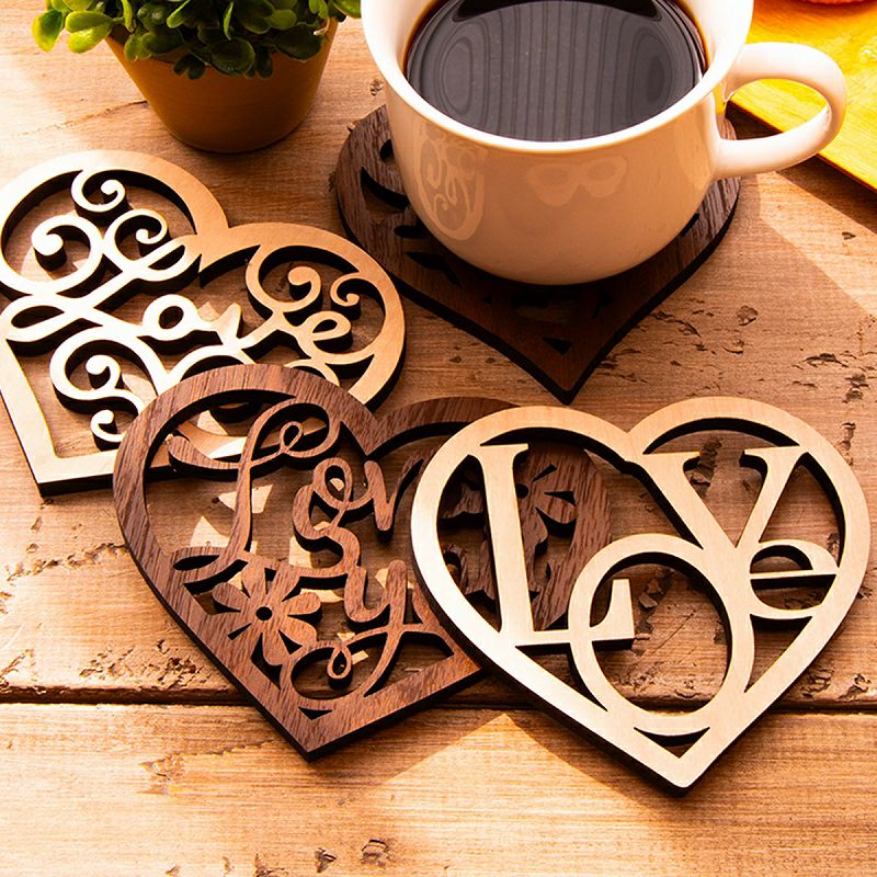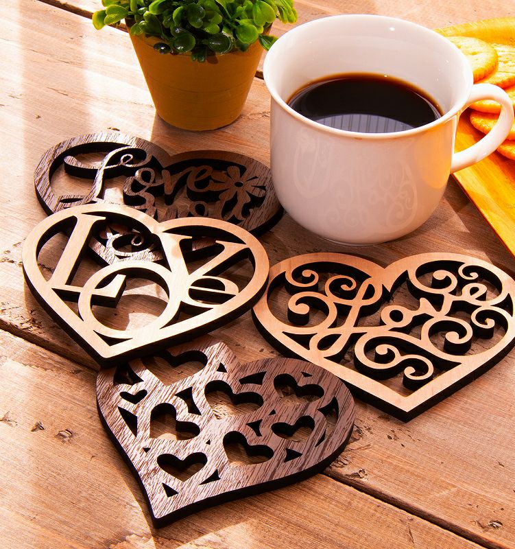 木製(MDF材)のハート型コースターで、ユニークな模様を楽しめます!