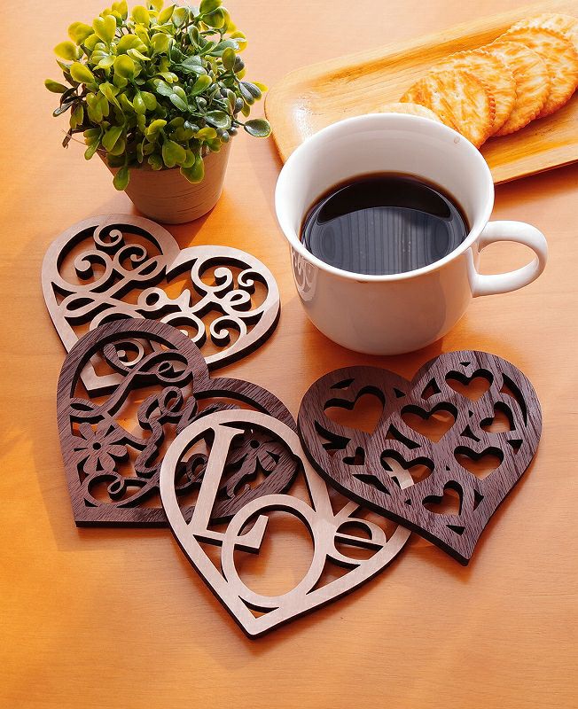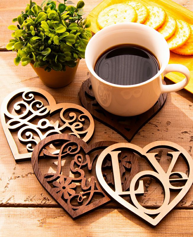 coaste010 コースター 4枚セット 木製 4種から選べるデザイン ハート形 コースター010