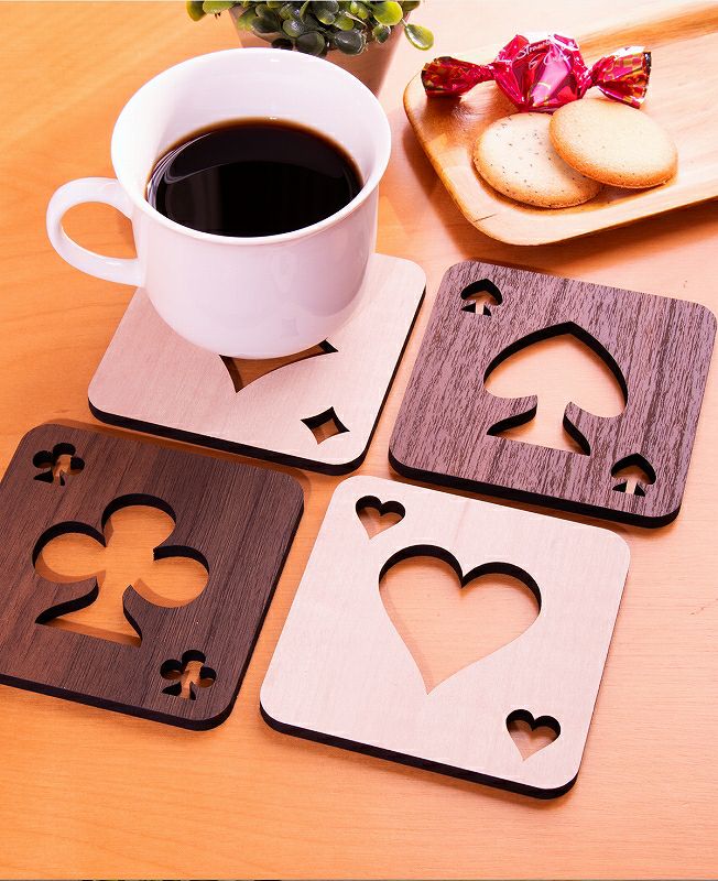 コースター 4枚セット 木製 2カラー トランプ角丸 コースター016
