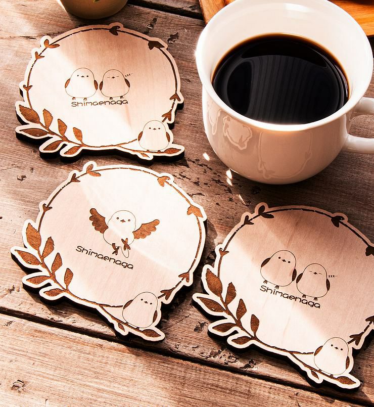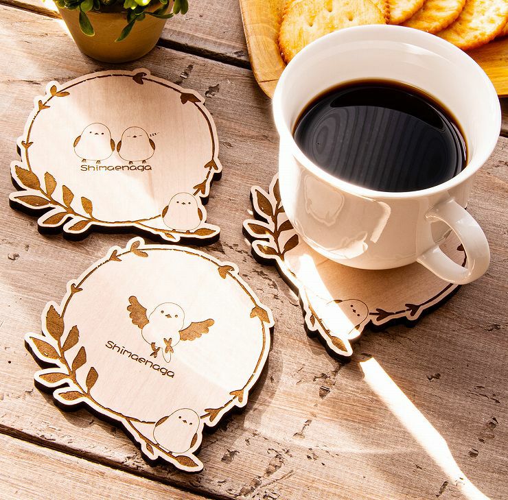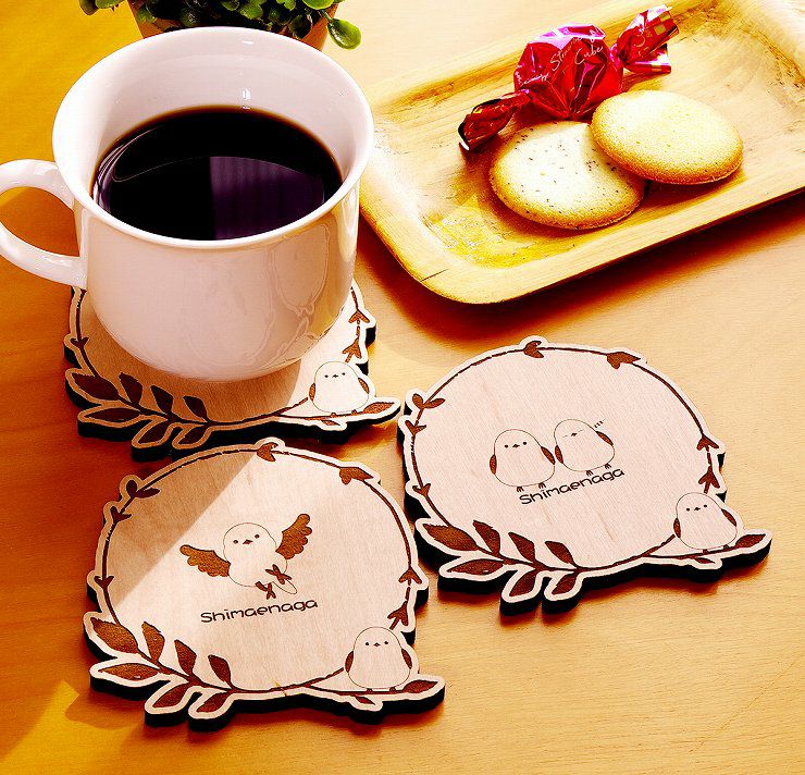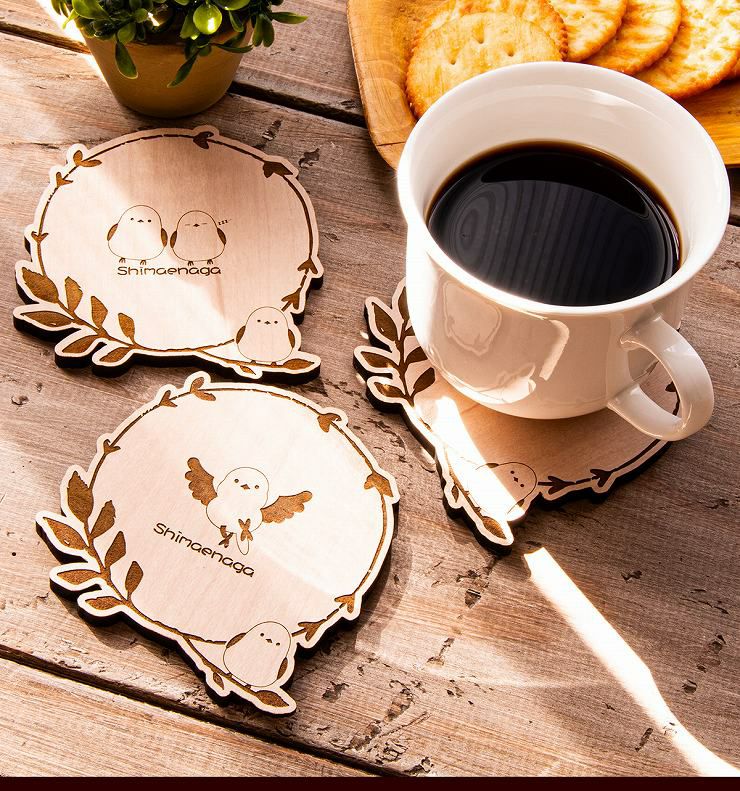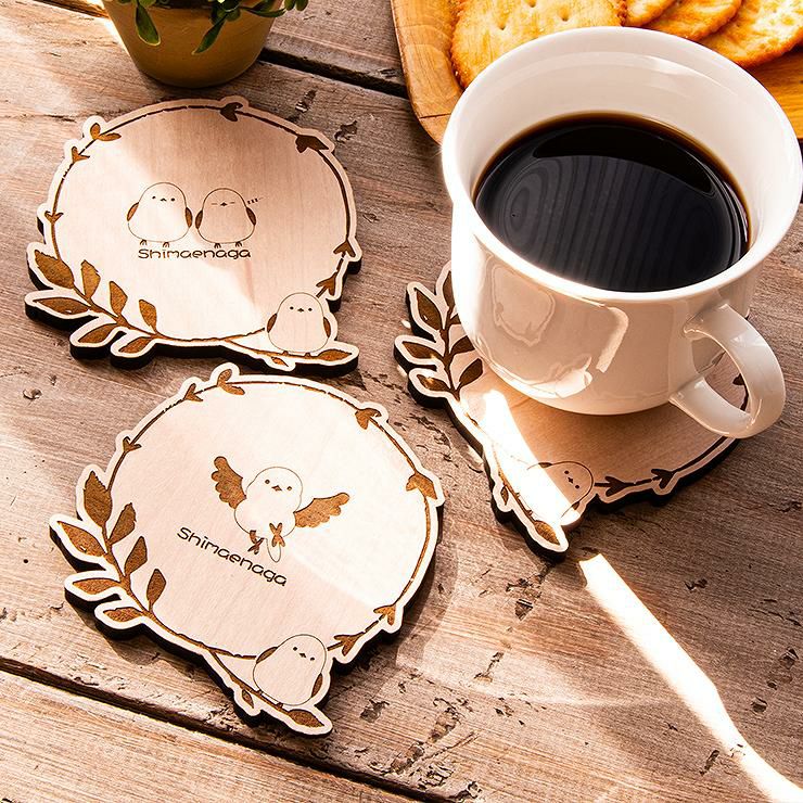 coaste018 コースター 3枚セット 木製 2種から選べるデザイン シマエナガ コースター018