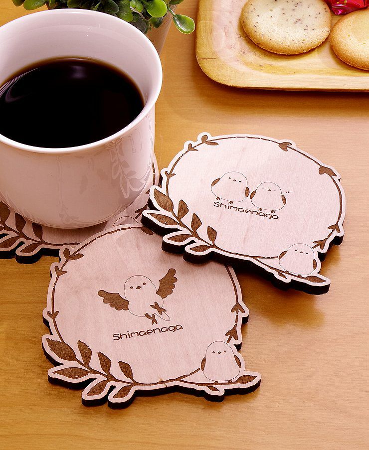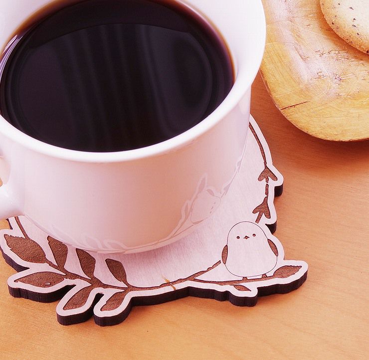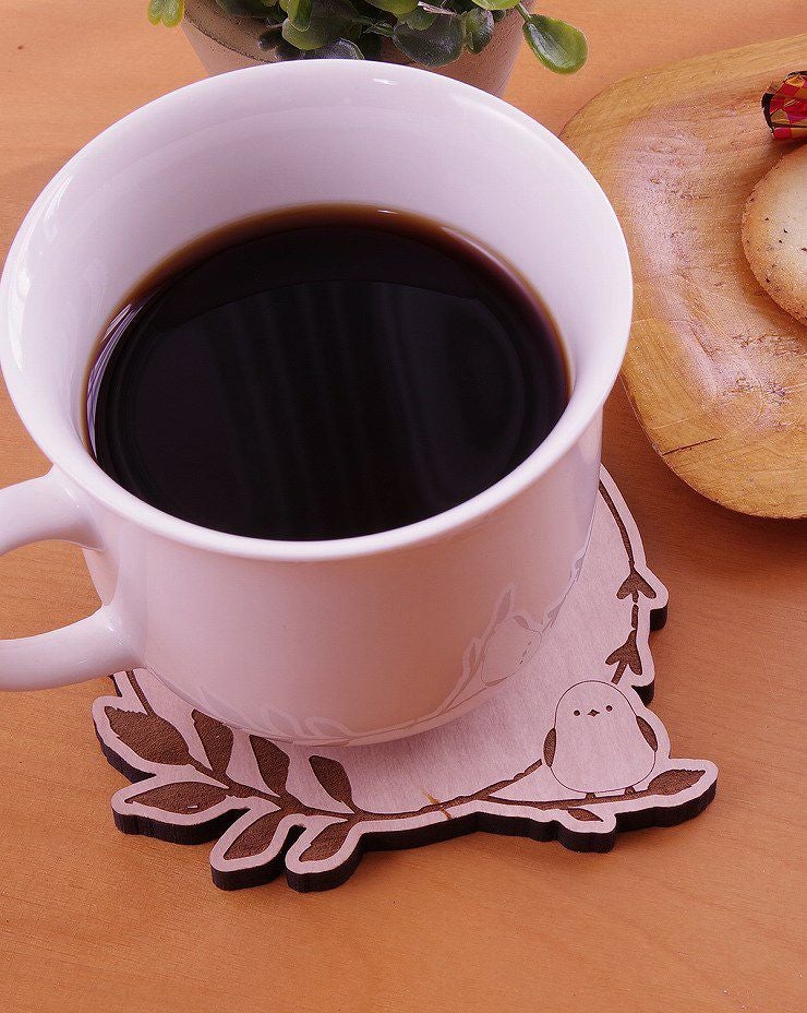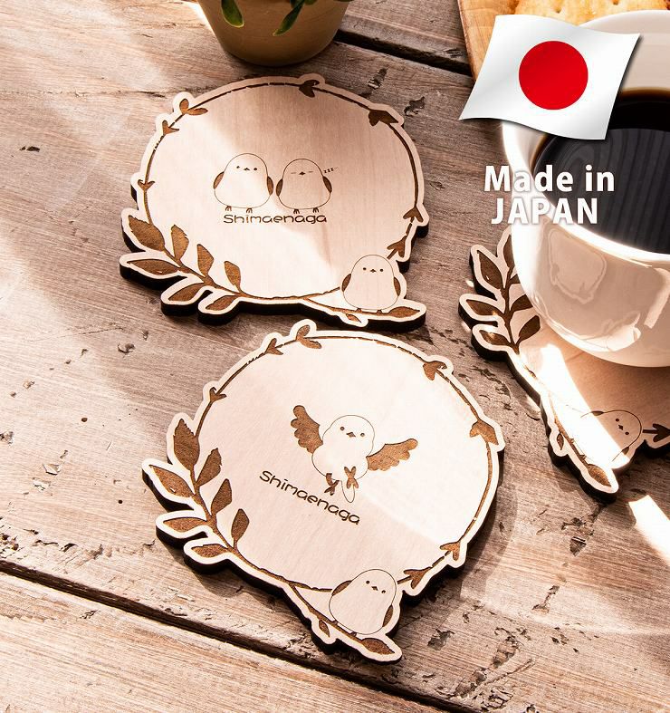 コースター 3枚セット 木製 2種から選べるデザイン シマエナガ コースター018
