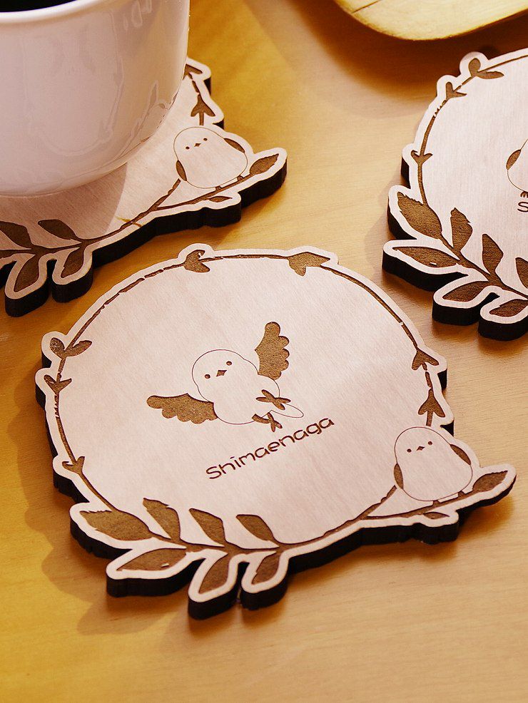 木製コースター 3枚セット 2種から選べるデザイン シマエナガ