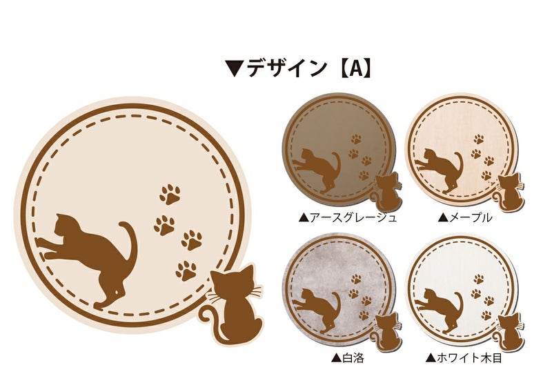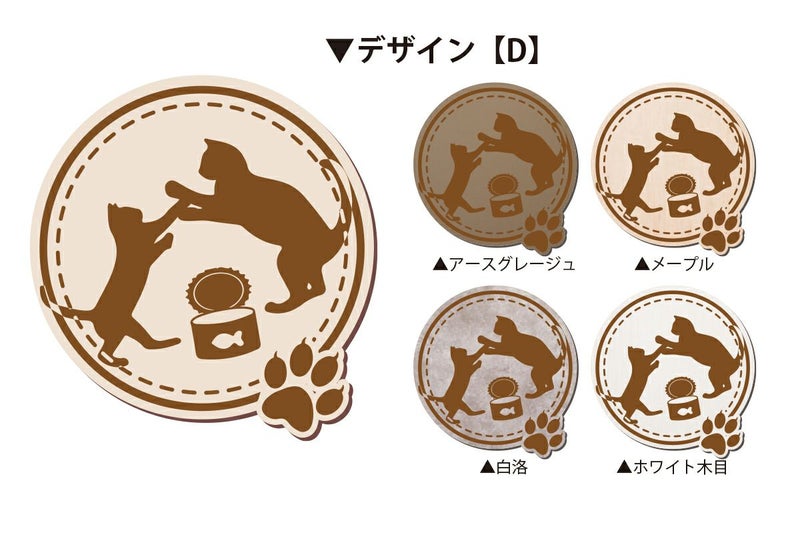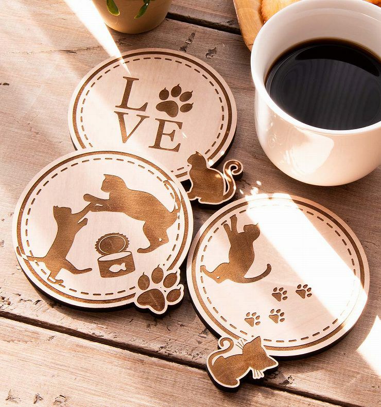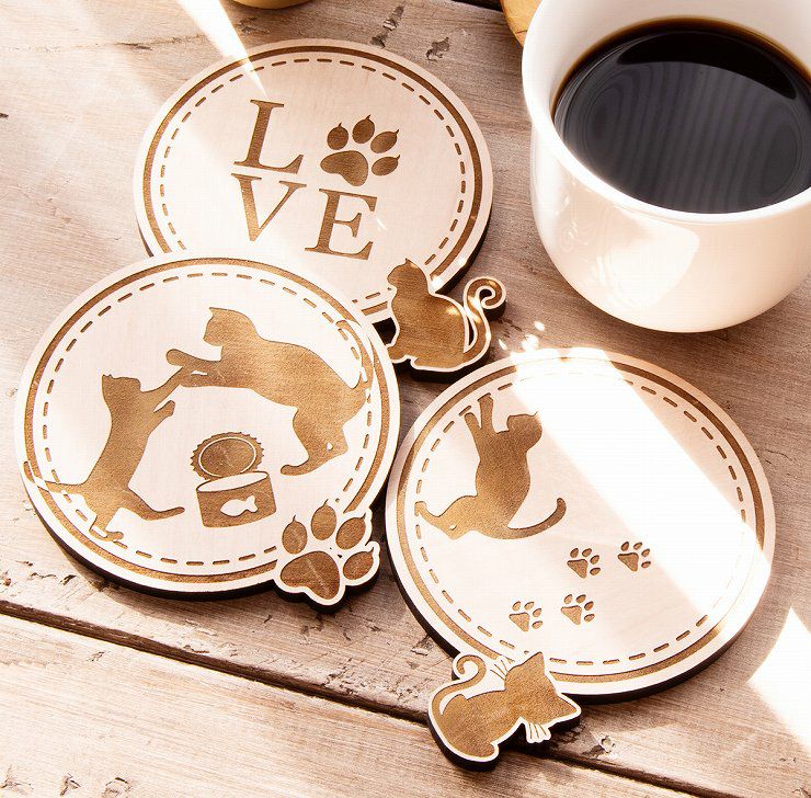 木製コースター 3枚セット 4種から選べるデザイン ネコ